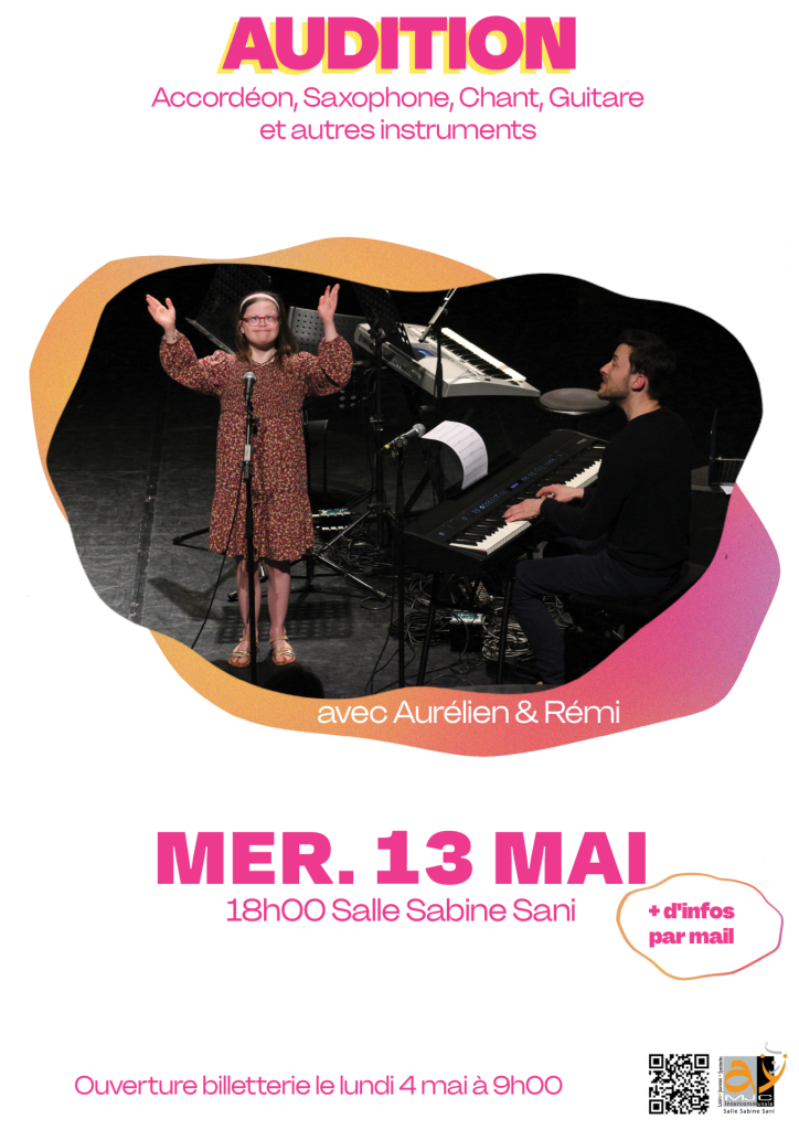 Pratiques amateurs Ay Tout public Audition Aurélien & Rémi Mercredi 13 mai 2026 à 18h00 Audition Pascal Audition d’ensemble